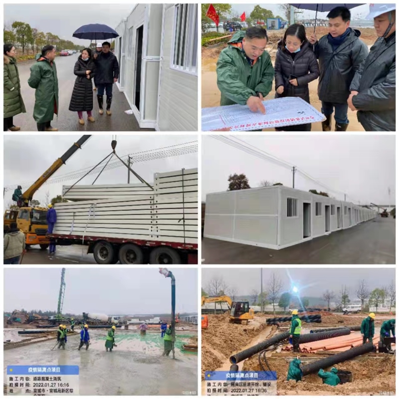 1月27日下午,宣州區(qū)政府副區(qū)長范瀟瀟到疫情防控臨時隔離點施工現(xiàn)場,查看工程施工進展情況,并充分肯定了項目施工進展速度。截止晚上18:00,疫情防控臨時隔離點項目集裝箱板房材料到場180多套,完成160套集裝箱板房拼裝;炷恋缆、雨污水管道和污水處理設(shè)施同步進行。面對即將到來的低溫雨雪冰凍天氣,區(qū)國資集團積極組織協(xié)調(diào)各項施工安排,施工人員全體上下團結(jié)一心,以堅決態(tài)度克服難關(guān),全力推進,高質(zhì)量完成項目建設(shè)。