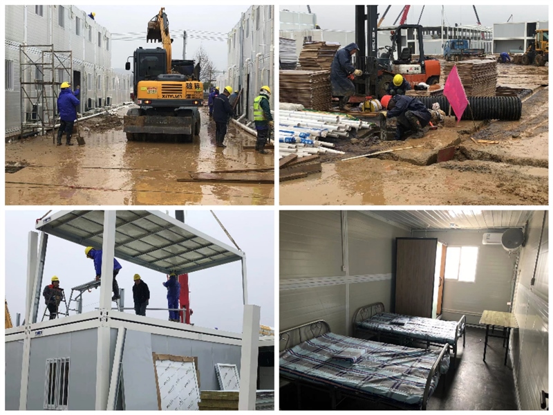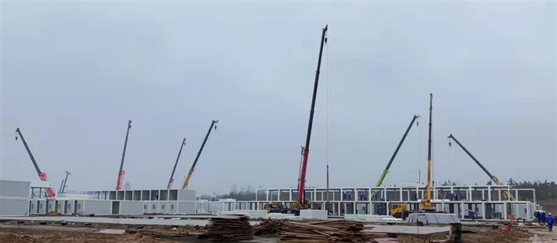 截至2月11日,隔離點項目準(zhǔn)備區(qū)折疊房安裝完成,折疊房室內(nèi)家具、空調(diào)、熱水器、淋浴房、水電正在有序安裝中;隔離區(qū)板房室外電力電纜井砌筑、緩沖區(qū)板房已安裝完成;污水處理設(shè)備正在安裝中,室外走道支模和路燈線路在準(zhǔn)備中。