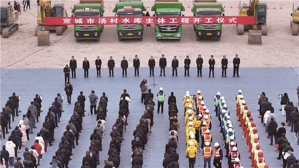 俞志剛說,今天,承載著86萬宣州人民60年期盼、16年努力的湯村水庫主體工程正式開工,此時此刻,回顧過往,感慨萬千;展望未來,干勁滿懷。星光不問趕路人,時光不負有心人。區(qū)委、區(qū)政府和全體參建人員要以湯村水庫主體工程正式開工為新起點,保持信心和決心,揚鞭奮進、奮楫爭先,嚴把工程建設(shè)質(zhì)量關(guān)、進度關(guān)、安全關(guān)和廉潔關(guān),努力把湯村水庫建成優(yōu)質(zhì)工程、提氣工程和廉潔工程,造福宣州人民。