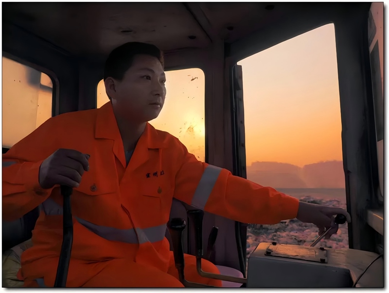 徐開鋒臨危受命,在填埋場當(dāng)推土機(jī)駕駛員。每天的工作就是把400多噸的垃圾推平壓實(shí)。每到夏、秋季節(jié),臭氣熏天的垃圾引來更多的蒼蠅“光顧”,用徐開鋒同事的話說,“遠(yuǎn)看徐開鋒就好像穿了一副‘將軍鎧甲',蒼蠅扒在他的臉上、手上、背上……”彼時的徐開鋒已經(jīng)是一名7歲女孩的父親,但為了應(yīng)對繁重的工作,他每天5點(diǎn)鐘就騎著摩托車出了門,等到晚上回家時,女兒多半已經(jīng)睡著了。“領(lǐng)導(dǎo)把我安排到這個崗位,我就要崗位上做出個樣!”,正是胸懷這份“執(zhí)拗”,他在填埋場推土機(jī)駕駛員崗位上堅持了11年。